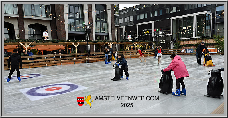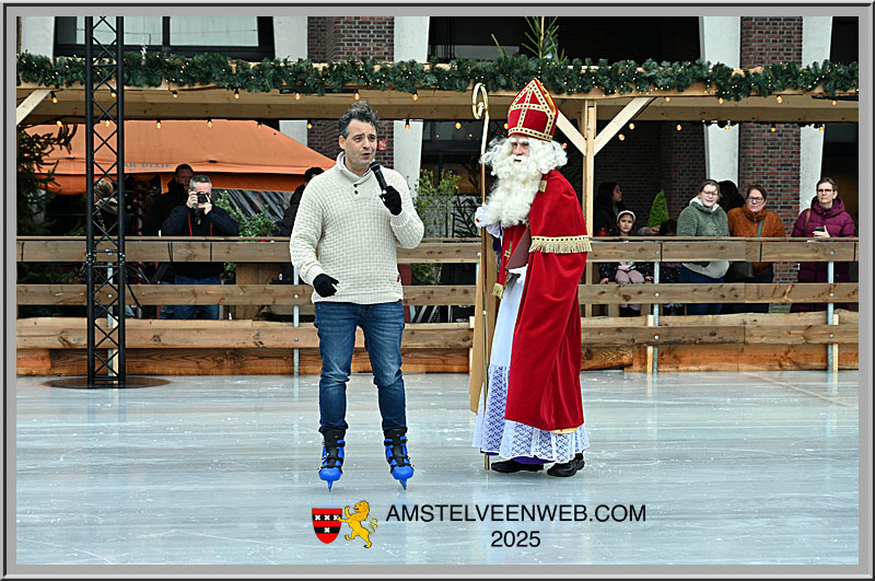 De wethouder zag er erg stoer uit met zijn wintertrui en trok ook schaatsen aan waarmee hij het ijs opging terwijl de Sint schuifelend naar hem toekwam. Elkazalai sprak de mensen toe, verwelkomde hen en vond het fijn dat de ijsschaatsbaan weer in Amstelveen was omdat dat toch wel een traditie in Amstelveen is geworden. ‘We zijn als Amstelveen’ zo zei hij ‘ongelooflijk trots dat we dit weer hebben weten te realiseren met elkaar in de kerstvakantie. Er kunnen allerlei activiteiten plaatsvinden zoals curling, maar als je wat minder mobiel bent kan je ook schaatsen in de eerste week van de kerstvakantie om het te leren of te verbeteren. Dan kunnen we in Amstelveen laten zien dat schaatsen inclusief is en dat moeten we vooral ook zo houden.’