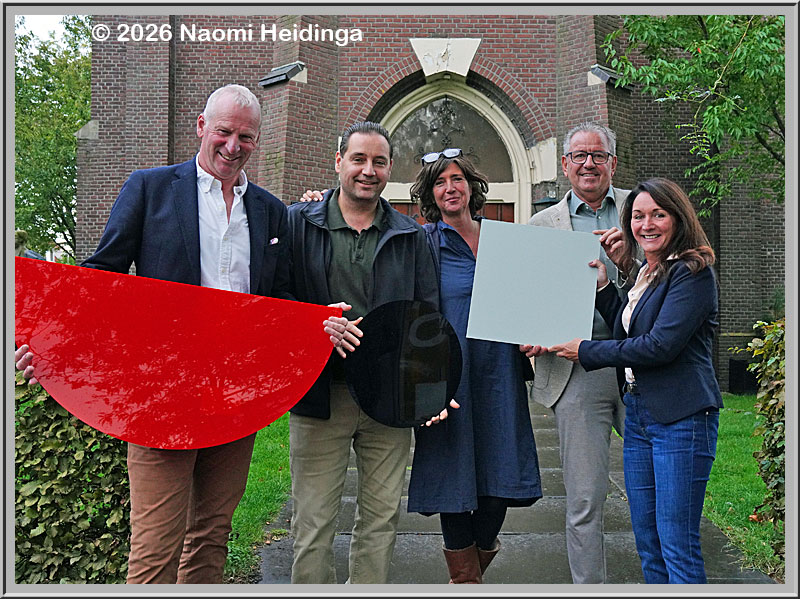 Burgemeester Poppens onthult het nieuwe logo van de Vereniging Historisch Amstelveen, een eerste stap voor een vernieuwde uitstraling en een eigentijdsere presentatie