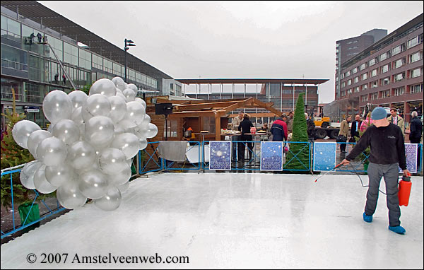 TNT Post heeft een hoop geld geïnvesteerd in de presentatie, want zelfs een kunstijsbaan werd opgebouwd in het Stadshart van Amstelveen en met gratis snoep en warme drankjes waren de mensen naar de happening gelokt.