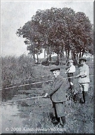 Vissende jongens ergens achter de kerk ca 1910. De precieze plaats is niet na te gaan, omdat alles inmiddels erg is veranderd