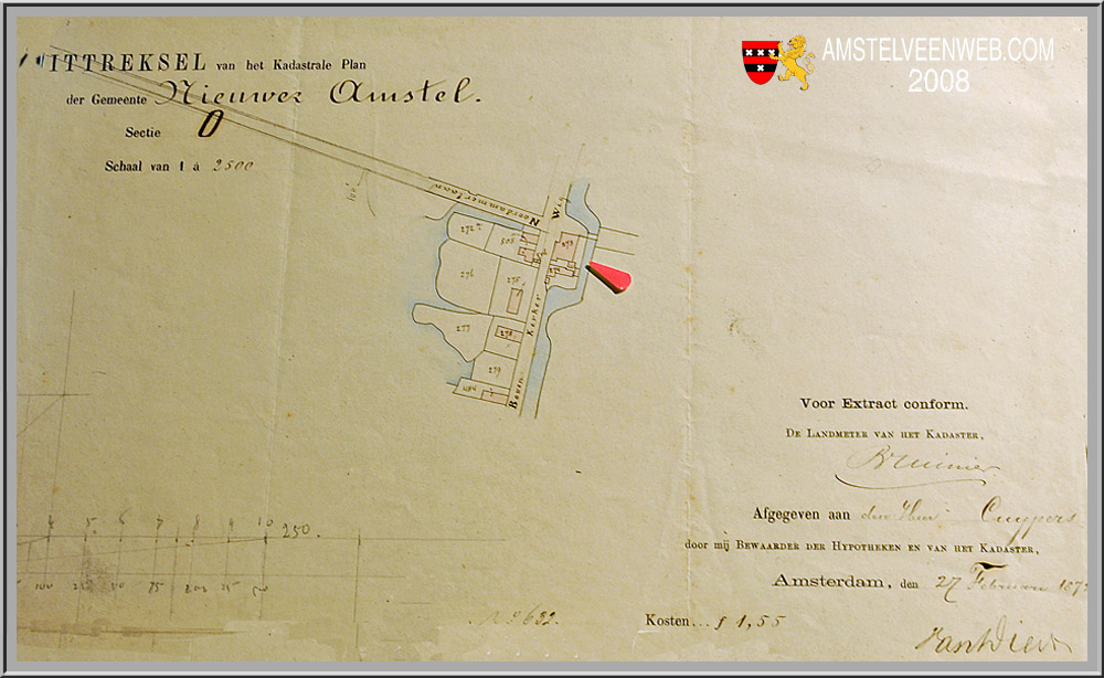 Tekening uit het kadaster, zoals deze werd afgegeven door architect Cuypers op 27 februari 1872 te Amsterdam