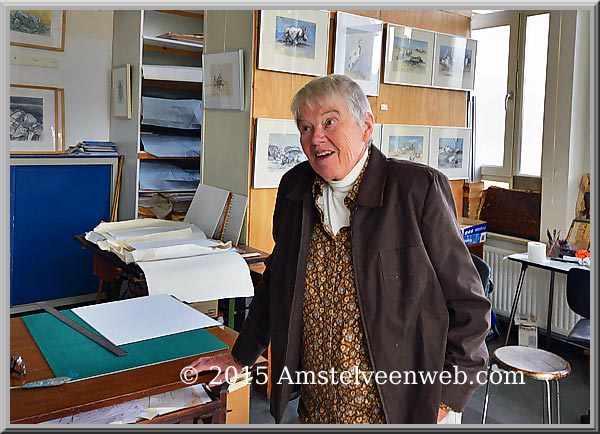 Als eerste werd Janneke Stilma bezocht. Haar huis ligt wat afgelegen, namelijk aan het Turfschip in Waardhuizen. Het is dan ook jammer, dat niet zo heel veel mensen een ommetje wilden fietsen, of rijden, om haar prachtige collectie schilderijen en keramiek, te bezoeken.