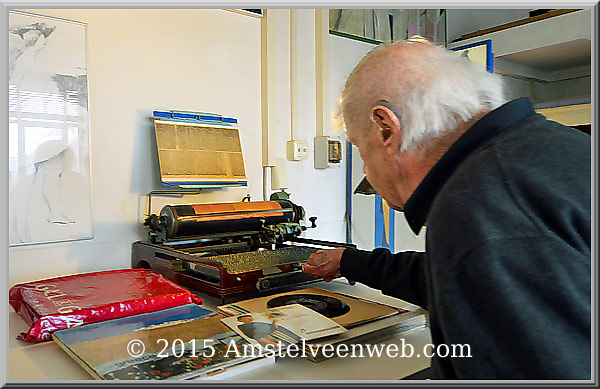 De redactie bracht weer een bezoek aan Norman Roemer die zoals altijd tijdens de Atelierroute in een prachtig opgeruimd atelier zat en de bezoeker rustig zijn gangetje liet gaan. Amstelveenweb.com heeft al eens verslag gedaan van Norman, toen hij exposeerde in het Museum Jan van der Togt in 2011. Tijdens deze atelierroute heeft de redactie niet alleen zijn schilderijen bekeken, maar ook verschillende typmachines, waarvan hij een hele collectie heeft. De mooiste en meest bijzondere was wel een Chinese typmachine, waarbij je geen toets hebt met een letter, of karakter, maar waarbij je telkens een karakter oppakt met een speciaal mechaniekje, uit het tableau van karakters en vervolgens dit een afdruk laat maken. Dan moet eerst weer het karakter teruggeplaatst worden via het mechaniekje en kun je het volgende pakken en gebruiken. Een zeer fraai en bijzonder apparaat, maar natuurlijk zijn ook zijn werken zeer de moeite waard.
