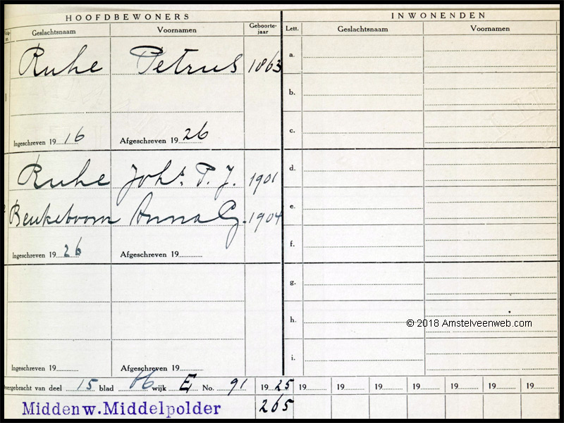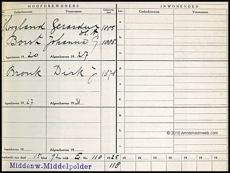 Gegevens uit Adresboek Nieuwer-Amstel van 1925 over de inschrijving van mensen uit de Middelpolder.
