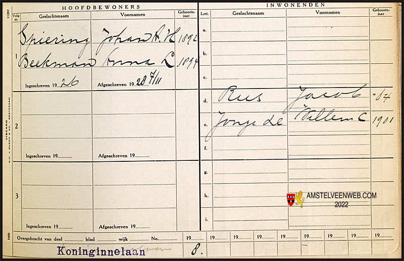 Inschrijvingen in Bevolkingsregister 1926-1930