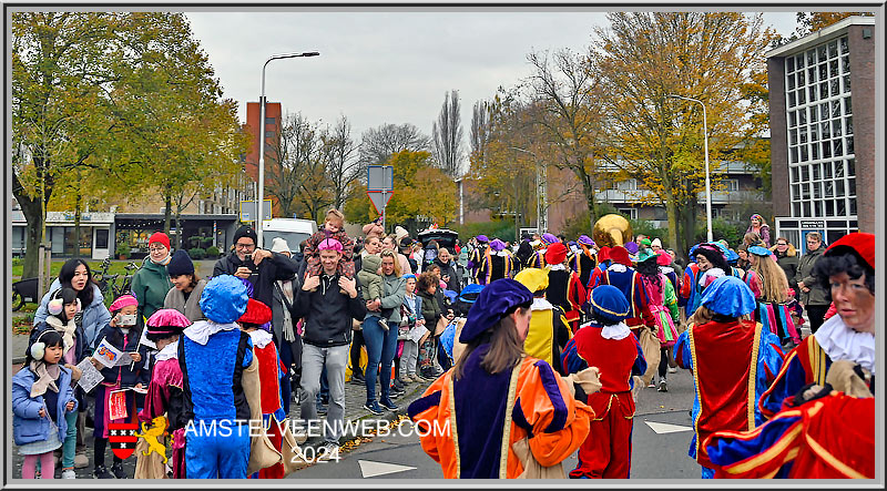 Sinterklaas kwam op zaterdag 16 november 2024 meteen vanuit Vianen naar Amstelveen. Het was een bewolkte dag met dreigende luchten en een temperatuur van 9 graden. Het voelde kouder vanwege de gure snijdende wind. Zelfs Sinterklaas moest een dikke warme mantel aantrekken, want op zijn paard 'Ozosnel' zat hij hoog, waardoor hij nog meer wind voelde. Ondanks de kou stonden langs de route heel veel kinderen. Het was voor de verschillende drumbands lang lopen en ook voor de redactie. Jarenlang stonden zij op het Stadsplein Sint en de Pieten op te wachten, maar deze keer volgden zij de Sinterklaasoptocht vanaf de Van der Hooplaan, Lindenlaan, Keizer Karelweg, Handweg, Dorpsstraat, Amsterdamseweg, Molenweg, Graaf Aelbrechtlaan, Rembrandtweg, maar niet echt mee op het Stadsplein, zoals vroegere jaren.