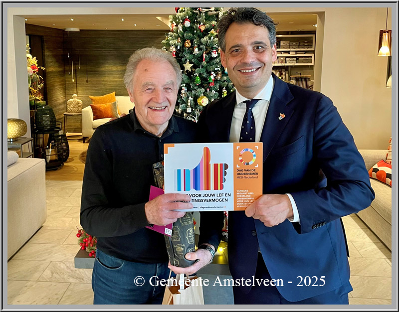 Op vrijdag 21 november zette de gemeente Amstelveen lokale ondernemers en het georganiseerde bedrijfsleven in het zonnetje. Bestuurders van ondernemersverenigingen en Bedrijfsinvesteringszones (BIZ) kregen van wethouder Economische Zaken Adam Elzakalai persoonlijk waardering voor hun inzet met een bezoek, hapjes en een attentie. Zo feliciteerde de gemeente Willem Ruhe en Ron Hooijman met de oprichting van een nieuwe BIZ Noorder Legmeerpolder. Met deze actie benadrukt Amstelveen het belang van ondernemerschap voor een levendige stad.