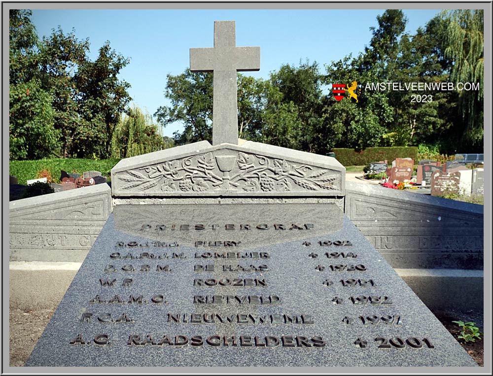 De steen van het priestergraf tussen de vleugels naast het oude priestergraf van Pastoor Brouwers met de namen van de priesters