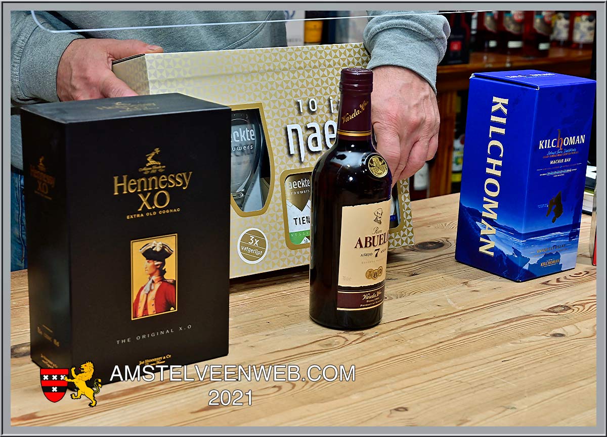 Het was rond half drie op vrijdag 19 november 2021 dat de redactie van Amstelveenweb Winkelcentrum Westwijk binnenliep op weg naar Hans Miltenburg van Slijter Miltenburg en Rouhard. Daar zou Hans van de ‘Naeckte Brouwers’ de eerste fles van het ‘jubileumbier TIEN’ overhandigd krijgen. De zaak is niet groot omdat er zoveel wijnen, bieren, likeuren en andere lekker dranken te koop zijn, zodat het nu met een paar klanten, de pers en de brouwers wel erg krap werd.