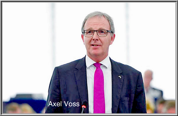 Axel Voss (1963) is een Duitse politicus (CDU). Hij is lid van het Europees Parlement sinds 2009 en is lid van de Commissie juridische zaken