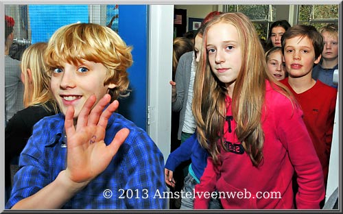 Op donderdag 31 januari 2013 feliciteerden kinderen van basisschool Palet Noord in Amstelveen, Hare Majesteit de Koningin met haar 75e verjaardag. In weer en wind stelden tientallen kinderen zich op om de felicitatie te tonen.