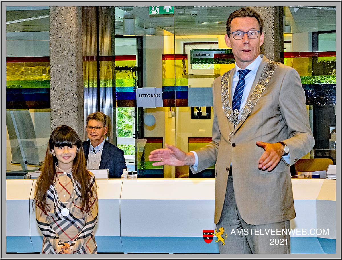 Voor de gemeenteraadsraadsvergadering van Amstelveen van donderdag 7 juli 2021 had burgemeester Tjapko Poppens de nieuwe kinderburgemeester Bana (10) officieel geïnstalleerd.