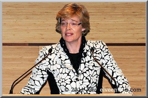 Carolien Gehlers, (PvdA) wethouder economische zaken van de gemeente Amsterdam, zei onder andere: 'Amsterdam verbindt ons met de wereld, maar het is ook een village, want Amsterdam verbindt ons ook met de mensen'