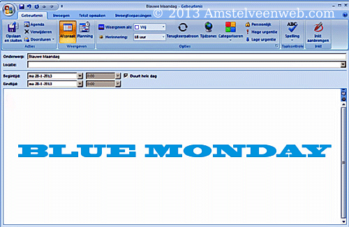 Maar het hele concept wordt beschouwd als pseudo-wetenschap en bespot door wetenschappers als onzin. Deze datum valt naar verluidt op de maandag van de laatste volle week van januari, dus in 2013 was het op 21 januari.