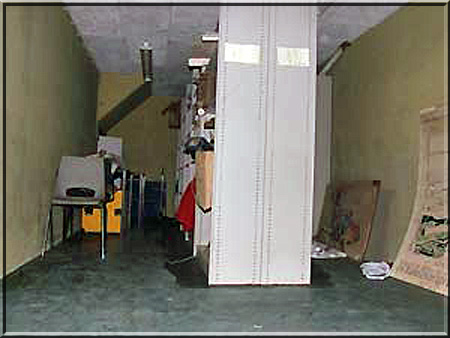 Een schuifluik geeft toegang tot een trap naar de eerste metalen deur. Dan slingeren door een smalle gang met douche naar een tweede metalen deur. Het interieur blijkt te bestaan uit twee naast elkaar gelegen ruimten van ongeveer 3x10 meter, met een metalen deur ertussen. Nabij de nooduitgang zit de complete luchtinstallatie met een klein koolstoffilter uit 1970.