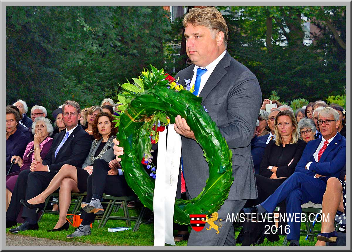 De heer Frank Kuyper, voorzitter van de stichting Amstelveen Oranje legt een krans in de naam van zijn organisatie