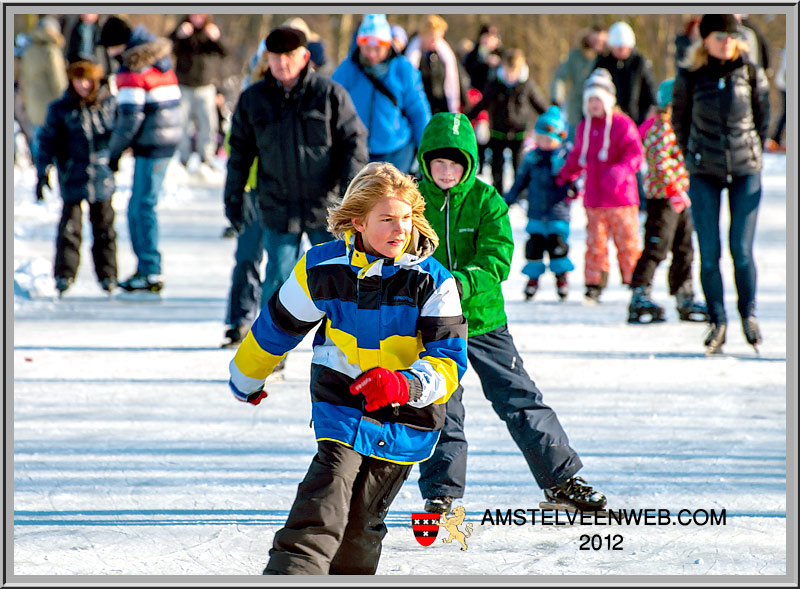 Jong en oud genieten van het heerlijke schaatsweer op de landijsbaan van De Poelster naast de Poel op 4 februari 2012
