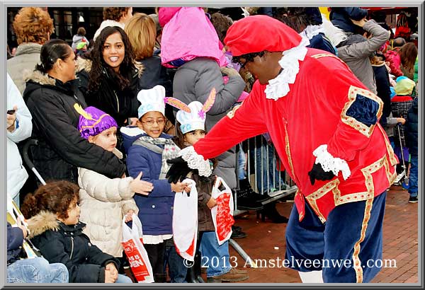 Op zaterdagmiddag 16 november 2013 was het dan zover, Sinterklaas en de Zwarte Pieten kwamen aan in Amstelveen. De feestelijke tocht liep kriskras door Amstelveen. De Sint, gezeten op zijn trouwe schimmel, werd begeleid door heel veel Pieten en natuurlijk opgeluisterd door verschillende muziekkorpsen waaronder de ‘muziek Pieten’.