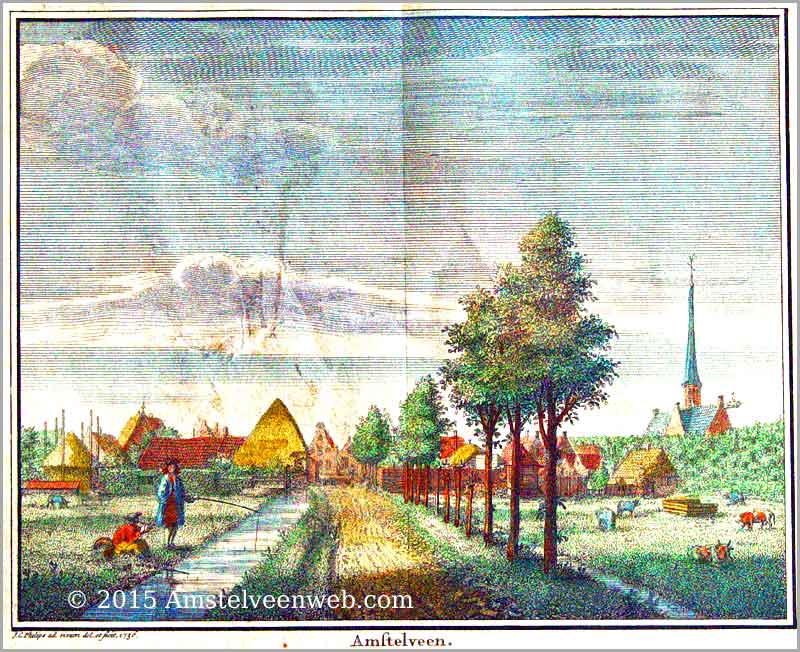 Gravure nr. 9. 'Amstelveen' 1736, ingekleurde ets van Jan Caspar Philips