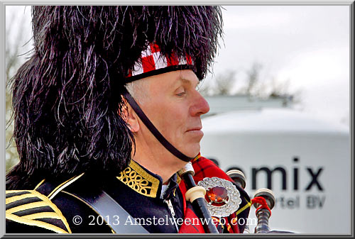 Steve the Bagpipe Player speelde op zijn doedelzak het Schots volkslied