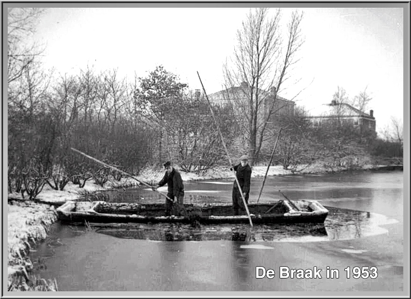 Kleinschalig baggeren van de bodem van de vijver van Heempark De Braak in 1953. Op de achtergrond woningen aan de Amsterdamseweg. De foto is in de zuidwestelijke richting gemaakt
