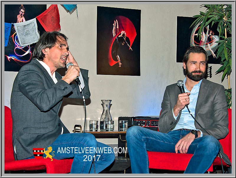 Na het muziekoptreden was het volgende optreden een verrassing. De persoon werd geïntroduceerd als AlexP die zijn elektronische apparatuur met de naam Minimal Universe mee had genomen. Hij had dat jaren geleden ontworpen voor een festival in Den Bosch. Na een korte speurtocht kwam de redactie van Amstelveenweb er achter dat deze man Alex Prooper uit Uithoorn is en op zijn website is te zien wat deze duizendpoot al jarenlang heeft bedacht en opgebouwd. Van muziek tot grafisch werk, licht installaties, videomuren, interactieve installaties, videomapping en God mag weten, wat hij nog niet heeft gemaakt. Het was erg leuk om te zien en te horen wat Alex met zijn handen in de lucht bewerkstelligde. Hij bewoog zijn handen boven een sensor in het apparaat, die sensor registreerde deze bewegingen en zette het om in een slimme algoritme pianomuziek met bewegende lichtbeelden. Het was een ware ontdekking voor veel bezoekers van de Amstelveense talkshow, dat deze virtuele vleugels al jaren bestaan in Uithoorn!