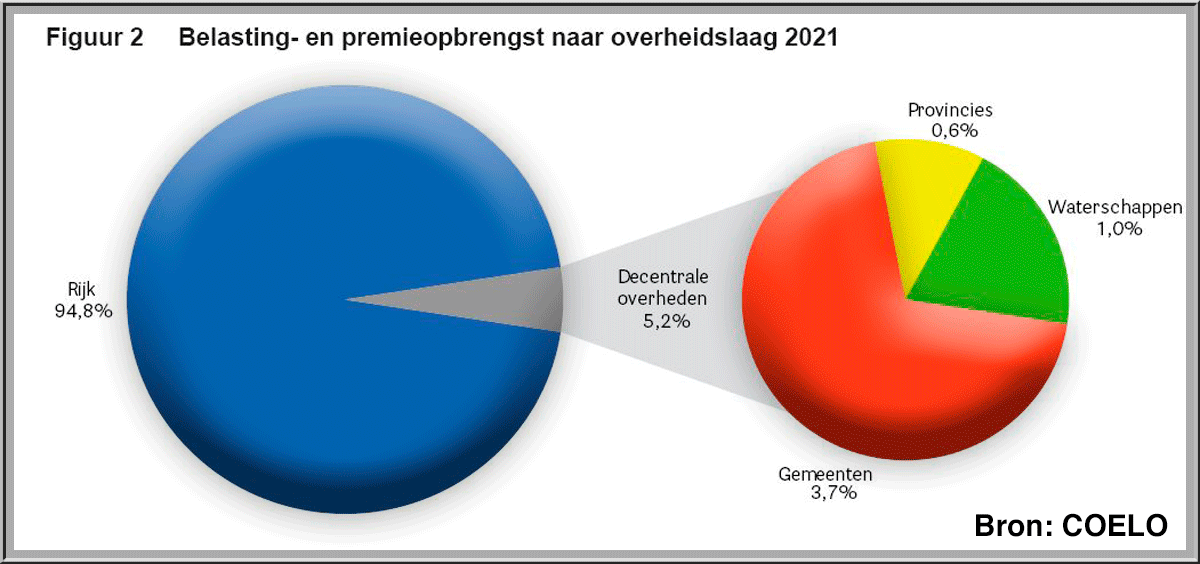 Belasting- en premieopbrengst naar overheidslaag 2021