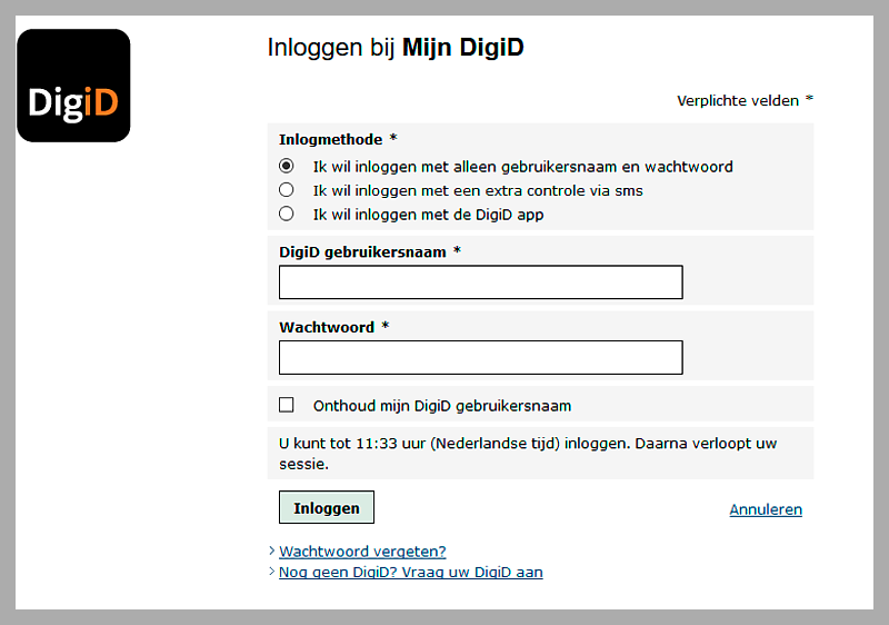 DigiD (uitgesproken als die-gie-dee) is de naam van een online systeem, waarmee Nederlandse overheden op internet iemands identiteit kunnen verifiëren. Op de foto is de screenshot van de inlogpagina van DigiD. Veel mensen hebben geen idee, hoe ze in moeten loggen en welke gegevens hebben ze voor nodig en dat kan vervelende gevolgen hebben