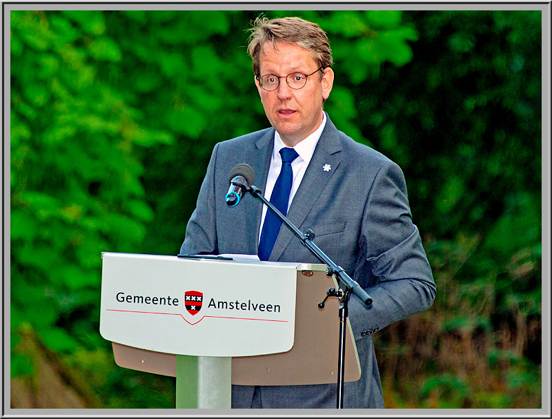 Tussen elke speech werd door het Fanfare korps een stukje stemmige muziek gespeeld. De tweede spreker was de burgemeester van de gemeente Amstelveen, de heer Bas Eenhoorn: