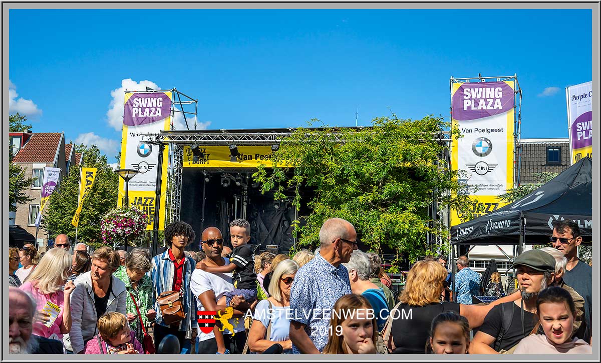 Zondag 1 september 2019 brak langzaam maar zeker de zon door en dat was erg plezierig voor iedereen, maar met name voor de organisatoren van Jazz in het Dorp van Amstelveen. Enkele dagen tevoren waren er 11 podia opgebouwd, verspreid door het Oude Dorp, waarvan 3 centrale muziekplaza’s met op elk één groot en klein podium. Ook had men een swingende kidscorner aangelegd.