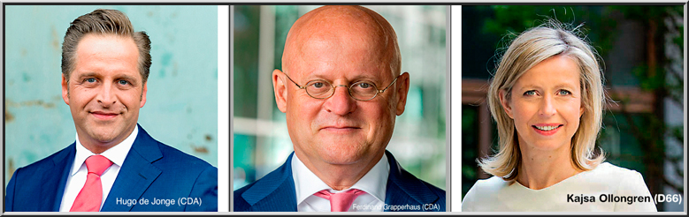 Hugo de Jonge (CDA) minister van Volksgezondheid, Welzijn en Sport, Ferdinand Grapperhaus (CDA) minister van Justitie en Veiligheid en drs. Kajsa Ollongren (D66) minister van Binnenlandse Zaken