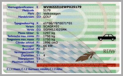 Op de achterkant van de kentekencard staan de gegevens van het voertuig