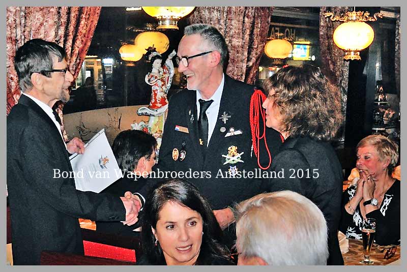 Tijdens de jaarlijkse Kerstviering van de Bond van Wapenbroeders afdeling Amstelland dinsdag 8 december 2015 ontving voorzitter Willem van Lith diverse gasten met wie wordt samengewerkt. Naast voorzitter Clemens Bouwens (Herdenking Gevallenen en Slachtoffers in Nederlands-Indië), voorzitter Frank Kuyper (Amstelveen Oranje), redacteur Floris Berkhof (Bondsblad), voormalig verzetsman en oud-voorzitter Veteranen Platform luitenant-generaal b.d. Ted Meines en actieve leden van deze organisaties, werd dit jaar mevrouw Ria Tammer welkom geheten.