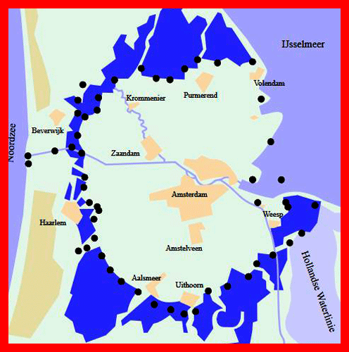 De UNESCO wereld erfgoedlocatie, bekend als de Stelling van Amsterdam, is een 135 km lange ring van vestingwerken rond Amsterdam. Het heeft 42 forten op 10-15 km van het centrum en het laagland, die gemakkelijk in oorlogstijd kunnen worden overstroomd