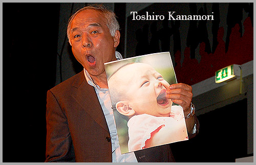 Meester Kanamori laat iedereen op een grote foto een lachende baby zien en vraagt de zaal, waarom de baby zo lacht? Dan laat hij de rest van de foto zien en je ziet, dat de baby gedragen wordt door koesterende handen. “Ik sta hier met de hoop, dat jullie zien hoe het is om met warme handen en een warm hart te worden gedragen en omhuld!”