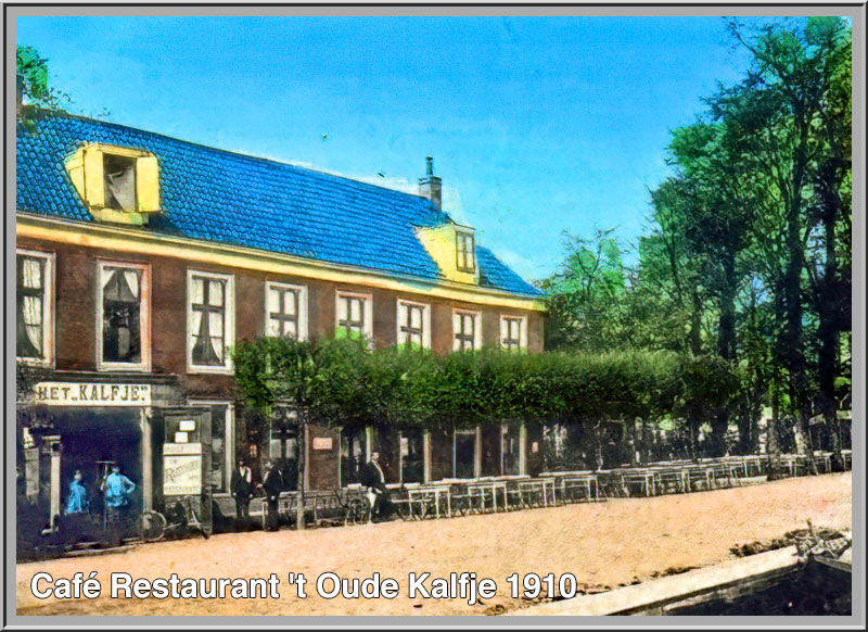 Café Restaurant 't Oude Kalfje in september 1910 aan de Amsteldijk 348/354 op een ansichtkaart