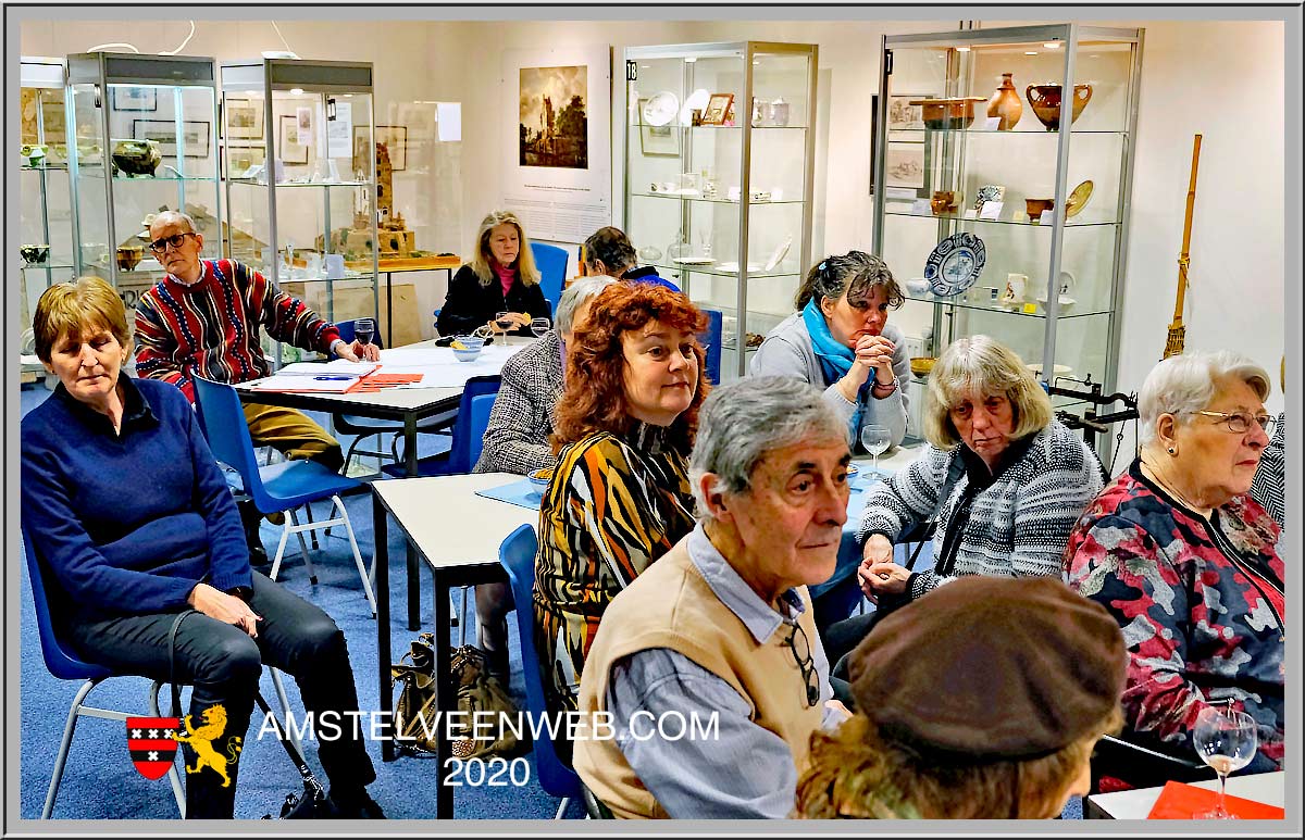 De leden van de vereniging volgen geïnteresseerd de toespraak van hun voorzitter, want het is de eerste keer dat een voorzitter van de Vereniging Historisch Amstelveen vertelt over de activiteiten van de leden van het afgelopen jaar, maar wijst ook op de toekomst tijdens een nieuwjaarsreceptie
