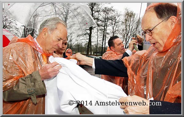 En dat was nog niet alles. Bezoekers kregen een oranje gerbera van Flora Holland aangeboden. Deze bloemen en de oranje poncho’s verdrongen de regen naar de achtergrond. Burgemeester De Graaf: “Alles wat nu valt, valt niet op 26 april. Dan schijnt de zon gewoon. Het gaat een prachtige dag worden. We hebben er zin”. “En we hopen natuurlijk, dat de komende tijd ook de rest van Amstelveen oranje kleurt, daarom nodigen we alle Amstelveners uit om in de aanloop naar Koningsdag mee te doen met de verkiezing