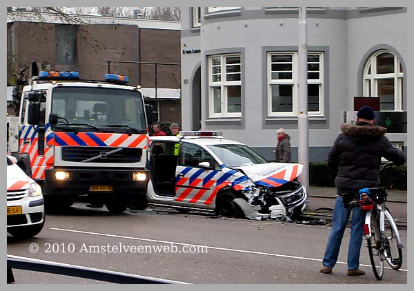 Een wagen van de Politie Amsterdam-Amstelland botste op vrijdagochtend 5 februari 2010 rond 8 uur 30 door onbekende oorzaak op een personenauto.