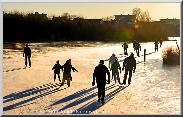 Hoewel het ijs op verschillende plaatsen erg zwak was, vonden er geen ongelukken plaats. In Amstelveen zijn ontelbare kleine vijvers en kanalen, waar ook op kleine schaal werd geschaatst, maar het mooiste is natuurlijk om op de Poel te schaatsen. Want waar vind je in Amstelveen nog zo een giga ijsbaan met afmetingen van 835 x 571 meter?