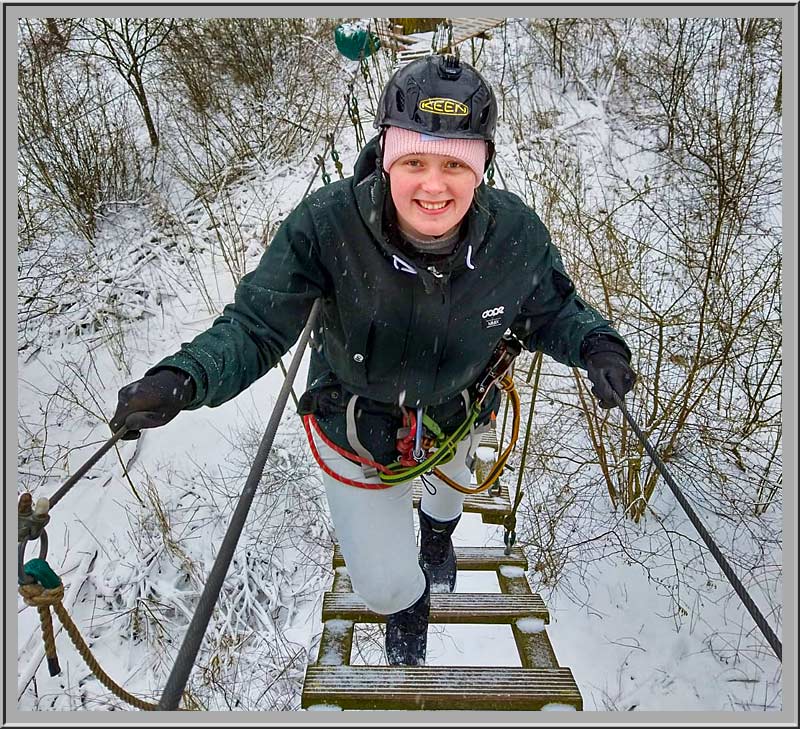 Klimmen in het winterbos