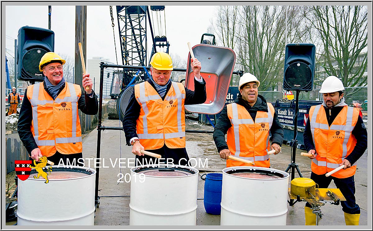 Al geruime tijd wordt hard gewerkt aan de voorbereidende werkzaamheden voor de ombouw van de Amstelveenlijn (sneltram 51). Nu aannemer VITAL met de funderingswerkzaamheden van start is gegaan, was het hoog tijd om de start van de daadwerkelijke ombouw te markeren met een symbolische starthandeling. Genodigden hadden van te voren al hun schoenmaat moeten doorgeven en werden deze middag naar de zesde etage van Hotel Cityden Up gebracht en moesten daar hun laaarzen, veiligheidsvest en helm aan en op doen. Met twee busjes werd er naar de bouwplaats gereden. Aldaar werd iedereen weer verwelkomd door Jeroen Engeln van Freefantasy. Het sneeuwde een klein beetje en het bouwterrein was modderig maar dat mocht de pret niet drukken. Degenen die het zeker niet koud hadden, alhoewel ze al een tijdje buiten stonden, waren de drie percussionisten aan van Buro van Otterloo. Zij hielden een lange sessie op de trommels, op een cementbak, op een kruiwagen en op tramstoppers. Het was echt een geweldige voordracht en vermoedelijk hebben de omwonenden er ook van kunnen genieten.
