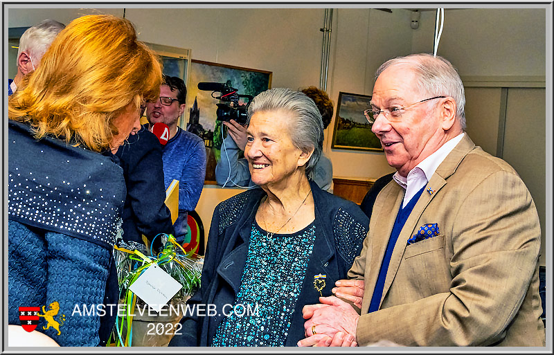 Bij binnenkomst was het al flink vol in het gebouw van de VHA aan Orion 19 in Amstelveen. Iedereen was druk met elkaar aan het praten toen de redactie van Amstelveenweb tot haar grote verrassing ontdekte dat Sjoukje Dijkstra aanwezig was en ook Joan Haanappel. Geweldig dat beiden 80 en 81 jarigen nog naar deze plek kwamen om de opening van de tentoonstelling bij te wonen. Beide dames kregen een ereplaats vooraan en de dochter van Sjouke, Katja Kossmayer en de echtgenoot van Joan, de heer Julian Carroll zaten achter hen.