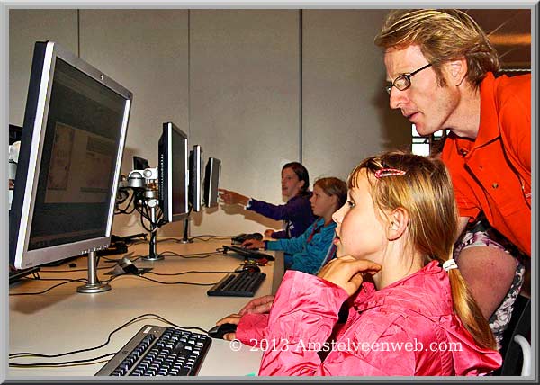 In de computerzaal worden virtuele ansichtkaarten gemaakt