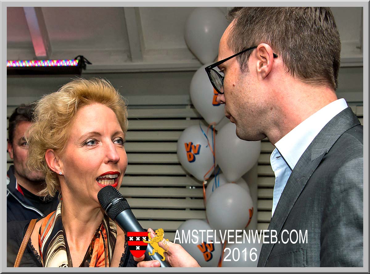 Jan van Zanen in gesprek met Crys Larson gemeenteraadslid en voormalig wethouder van Ouder-Amstel. Zij staat op de (concept)kandidatenlijst van de VVD voor de Tweede Kamerverkiezingen