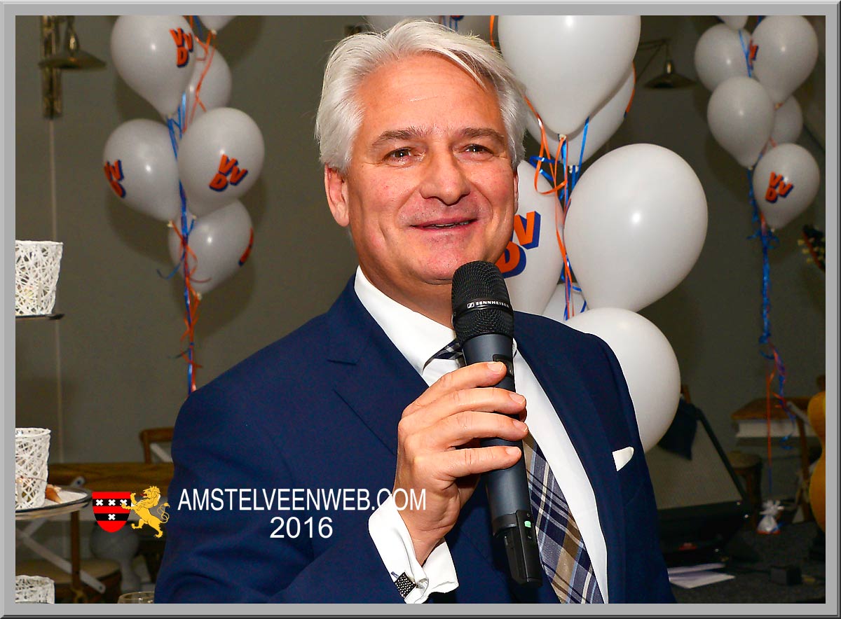 Claudio Mancinelli voorzitter van VVD-Amstelveen heette alle aanwezigen hartelijk welkom op 24 november 2016 tijdens het jubileumfeest in Brasserie Paardenburg van de lokale VVD en ook de leden van VVD-Ouder-Amstel, die tegenwoordig samenwerken, de ex-wethouders, de ex-voorzitters en de ex-fractieleden werden bijzonder welkom geheten, maar uiteraard ook de huidige wethouder en de fractieleden. VVD Nieuwer-Amstel werd in 1946, twee jaar eerder dan de landelijke VVD opgericht en bestaat 70 jaar. Helaas er was geen enkele persoon op het feest aanwezig die het openingsfeest had meegemaakt.