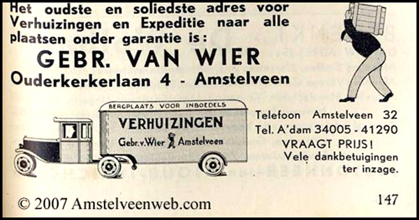 Nico van Kreuningen is op zoek naar informatie over de geschiedenis van het verhuis/expeditiebedrijf van de familie Van Wier te Amstelveen. Dit bedrijf was van zijn overgrootvader Marinus van Wier en diens broer Jan. Nico van Wier, de opa van Van Kreuningen, werkte ook voor het bedrijf.
